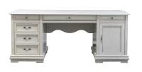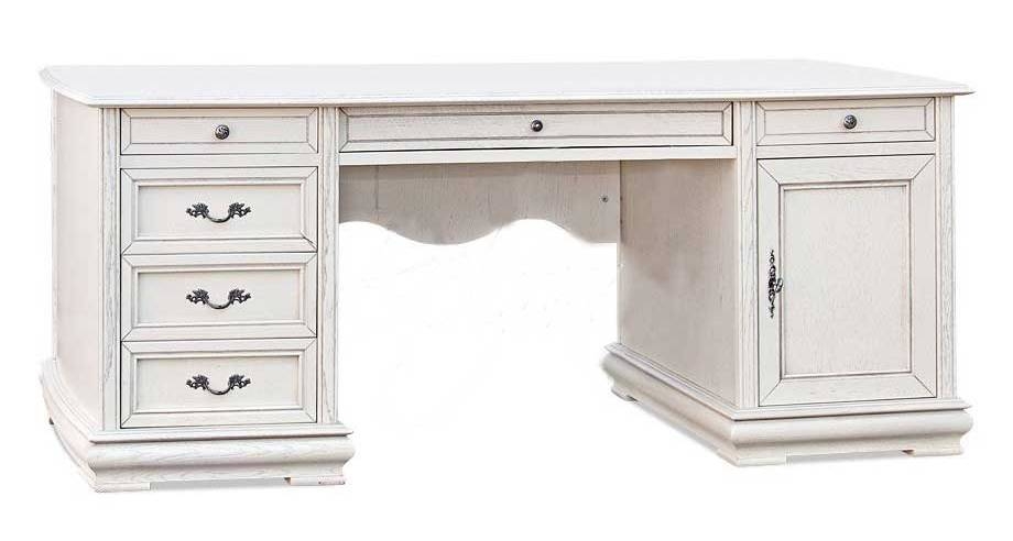 Двухтумбовый письменный стол коллекции «Оскар» сделан из массива прочной дубовой древесины. Панели ДСпТ отделаны шпоном из дуба. Окрашивание ореховым тоном подчеркивает фактурный рисунок благородного дерева, а покрытие белой эмалью с темной патиной создает ощущение винтажной мебели. Под столешницей обустроены удобные выдвижные ящики для хранения письменных мелочей. За распашной дверцей одной тумбы скрываются глубокие полки. В другой тумбе располагается три выдвижных ящика, позволяя вместить все канцелярские принадлежности. Красивые металлические ручки выглядят стильно, добавляя функциональности этому предмету мебели. |